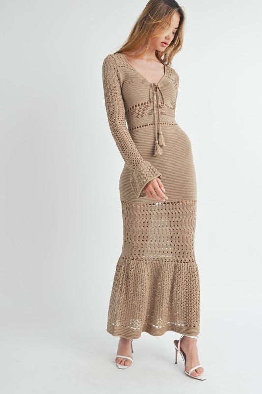 Mocha Crochet Bell Sleeve Maxi Dress